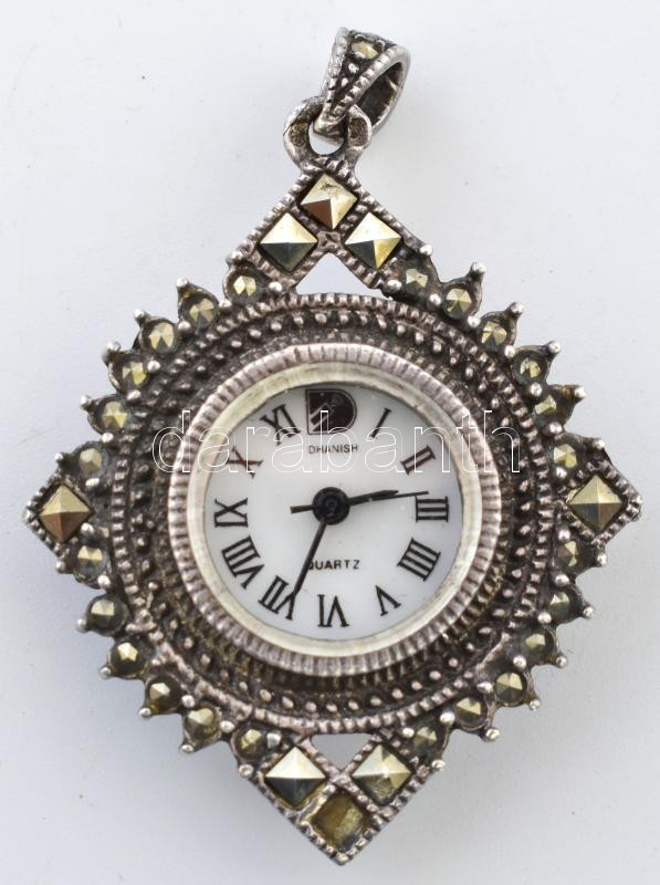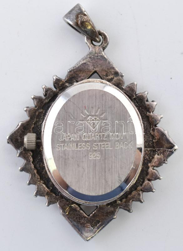 Ezüst (Ag) áttört medál, japán kvarc órával. Jelzett. 40x30 mm
