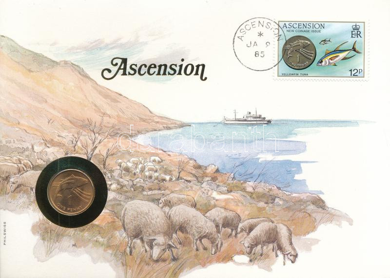 Ascension-sziget 1984. 1p bronz "II. Erzsébet" felbélyegzett... https://www.darabanth.com/en/448-Online-auction/448.0/Numismatics/Envelopes-with-Coins-and-Banknotes~500004/Ascension-sziget-1984-1p-bronz-II-Erzsebet-felbelyegzett-boritekban-belyegzessel-nemet-~II2976729