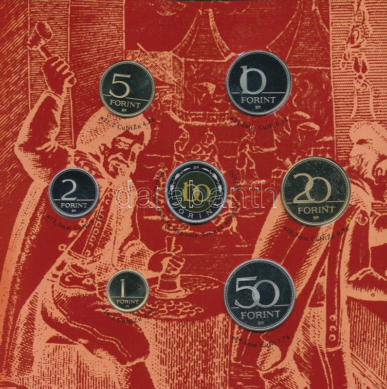 https://www.darabanth.com/en/448-Online-auction/448.0/Numismatics/Hungarian-Coin-sets~500021/2001-1Ft-100Ft-7xklf-forgalmi-sor-disztokban-Magyarorszag-penzermei-sorozat-belso-tokon~II2951272
