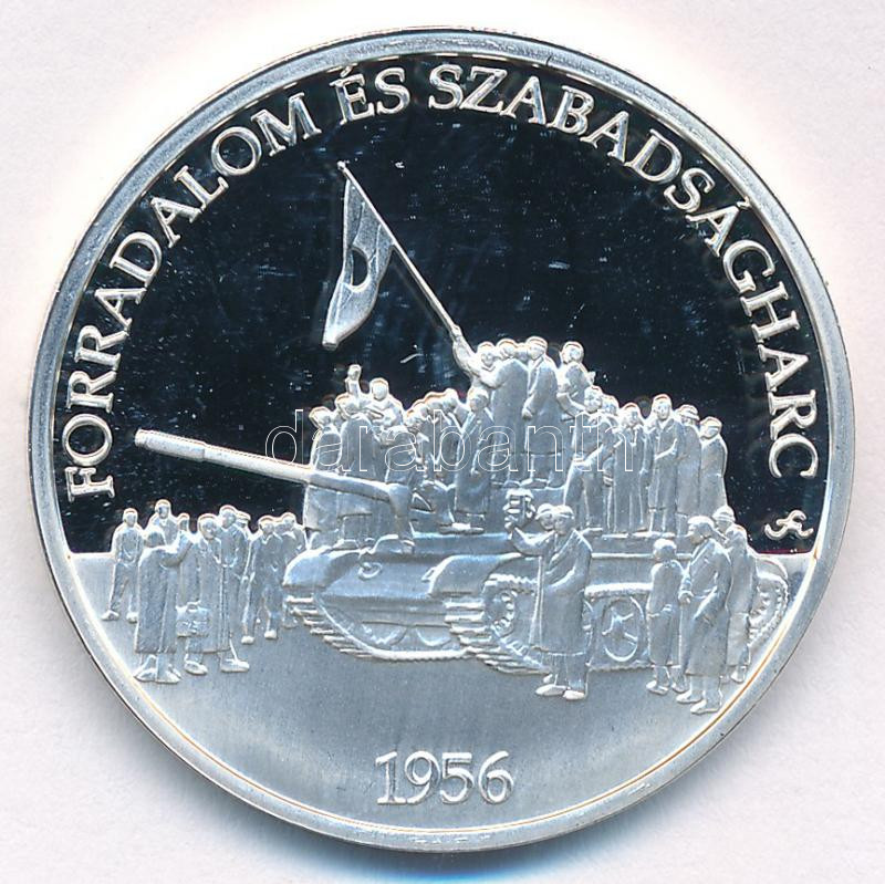 Fritz Mihály (1947- ) DN "Forradalom és szabadságharc 1956 / Magyarország Történelme" Ag emlékérem kapszulában, tanúsítvánnyal (15g/0.500/34mm) T:PP
