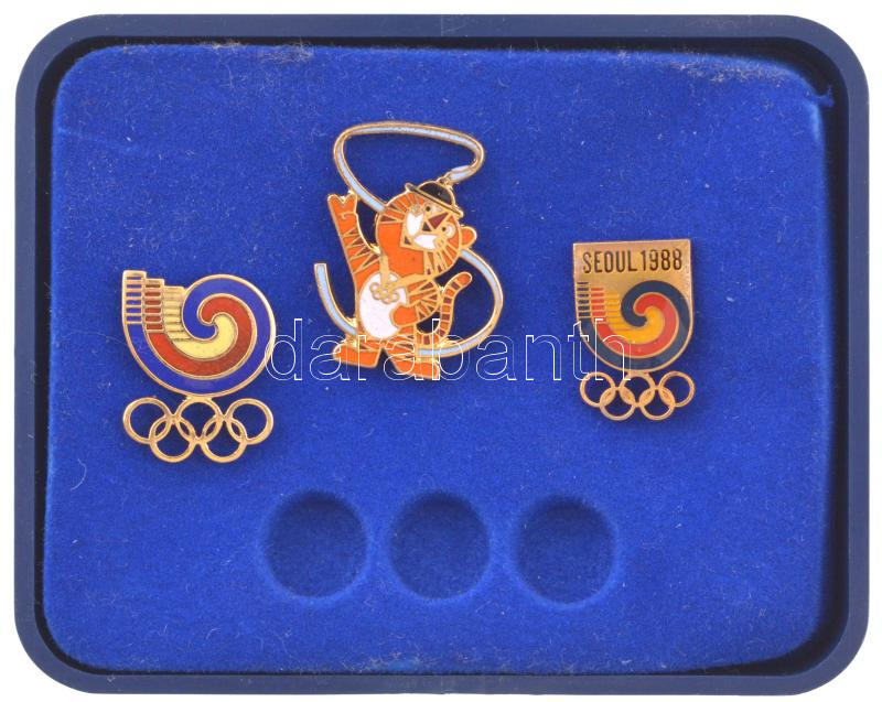 Description: Dél-Korea 1988. "Szöul 1988" 3xklf aranyozott, zománcozott és műgyantás fém jelvény szettben, eredeti tokban T:UNC