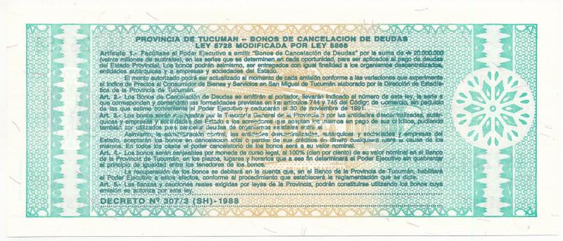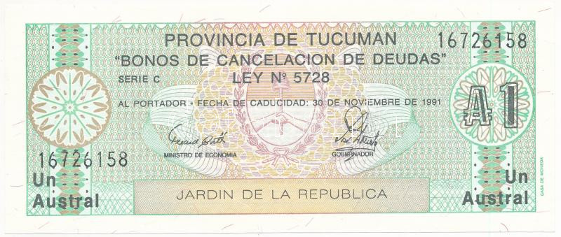 Argentina / Tucuman ND (1988.) 1 Austral local banknote C:UNC