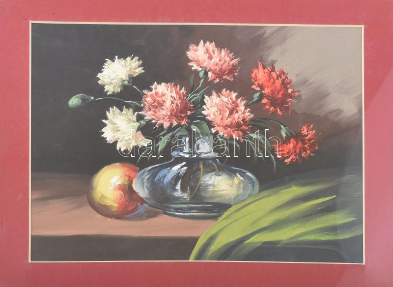 https://www.darabanth.com/en/448-Online-auction/448.0/Paintings-and-graphics/Paintings-and-graphics-quot-signedquot-or-quot-without-signquot-~1000002/Jelzes-nelkul-Csendelet-viragokkal-es-almaval-Gouache-papir-Paszpartuban-folia-alatt-~II2951145
