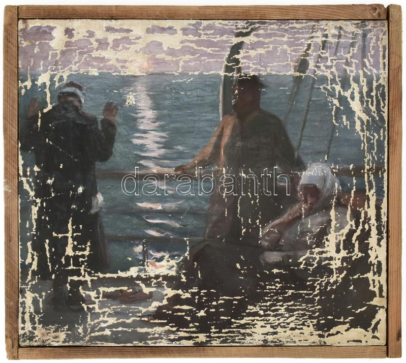 Jantyik Mátyás (Békés, 1864 - Békés, 1903): Hajósok. Olaj, vászon, erősen kopott, hátoldalán szignózva: Jantyik. 27x31 cm