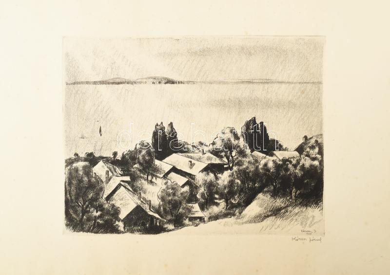 Kórusz József (1927-2010): Balaton. Rézkarc, papír, jelzett, lapszéli ...
