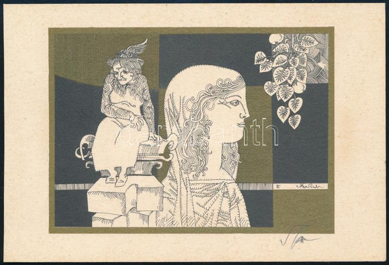 Szász Endre (1926-2003): Női alakok. Szitanyomat, papír, jelzett, 8x11 cm
