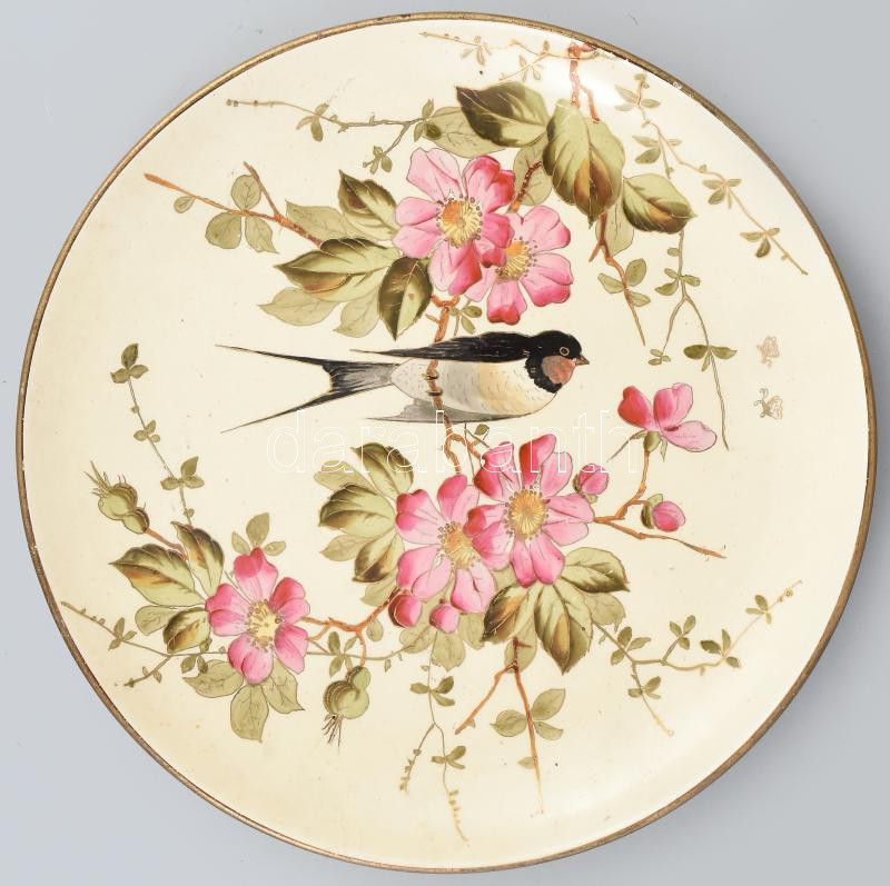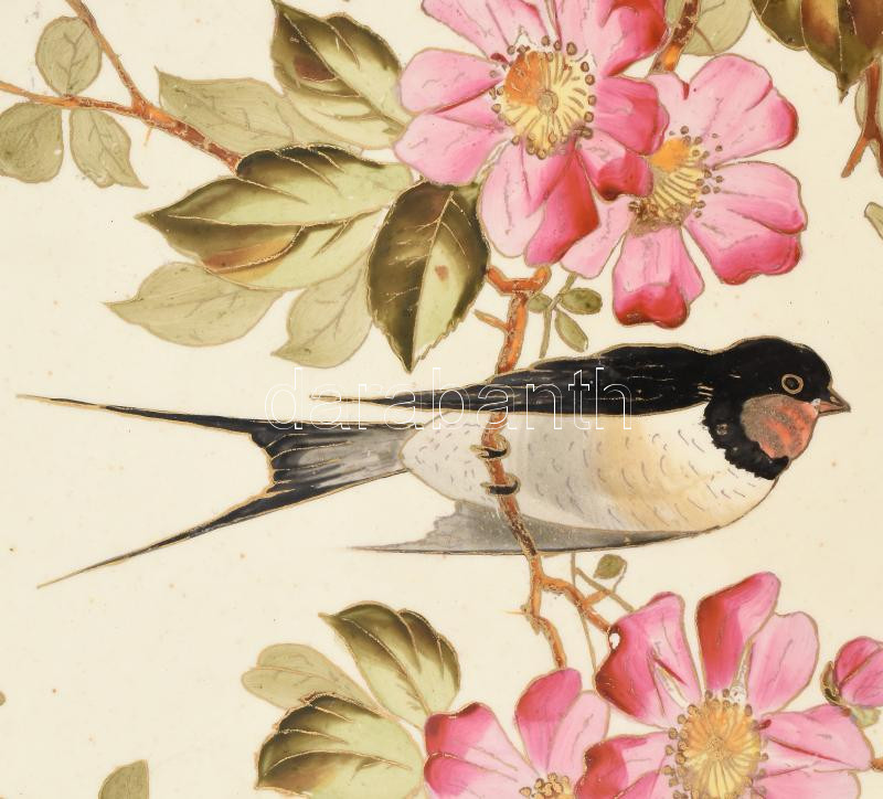 1896 Beregi Paula Fecskés tál. Kézzel festett, mázas fajansz. Jelzett ...