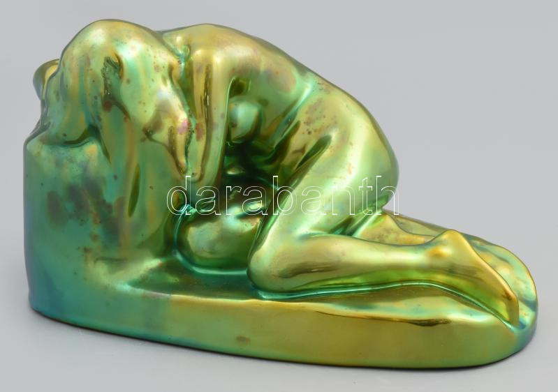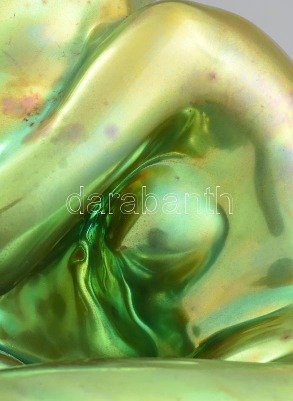 Liipola Yrjö, formatervező (1881 - 1971) Zsolnay: Kétségbeesés. Eozin mázas porcelánfajansz. Alján mázhibákkal, jelzett: Zsolnay öttornyos márkajelzés. 14 x 23 x 12 cm.