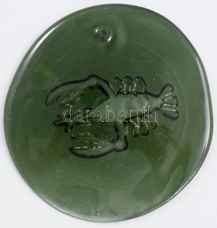 Homár mintás formába préselt üvegdísz, akasztható, anyagában színezett...