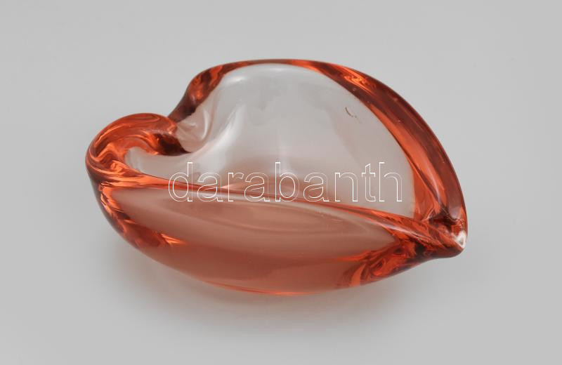 Skandináv színezett üveg hamuzó, jelzés nélkül, kis kopással, h: 12,5 cm