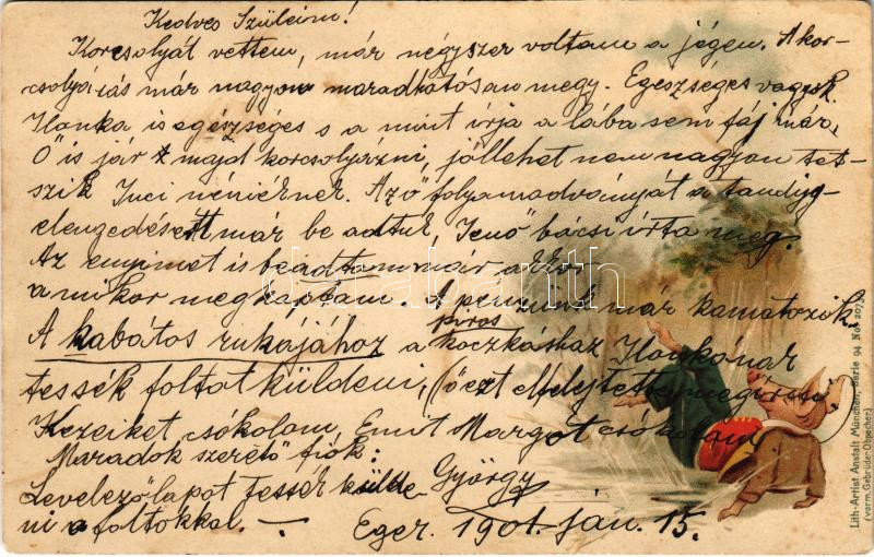 1901 Malac fiú / Pig boy. Gebrüder Obpecher Serie 94. No. 20739. litho