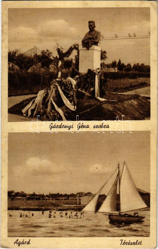 1942 Agárd, Gárdonyi Géza szobra, tó részlet vitorlással. Csajka Bazár kiadása (EK)