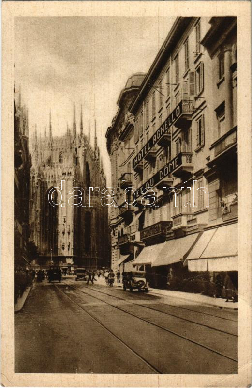 Milano, Milan; Hotel Agnello et du Dome / hotel, cathedral, automobiles (fa)