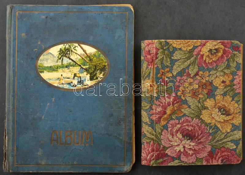 2 db régi képeslap album pár kisebb szakadással összesen 172 férőhellyel / 2 old postcard albums with smaller tears, for 172 postcards together
