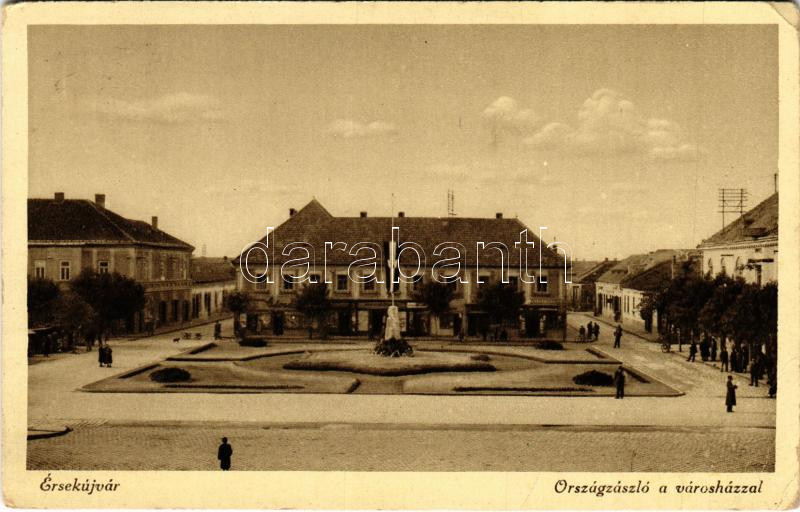 1941 Érsekújvár, Nové Zámky; Országzászló és városháza / town hall, Hu...
