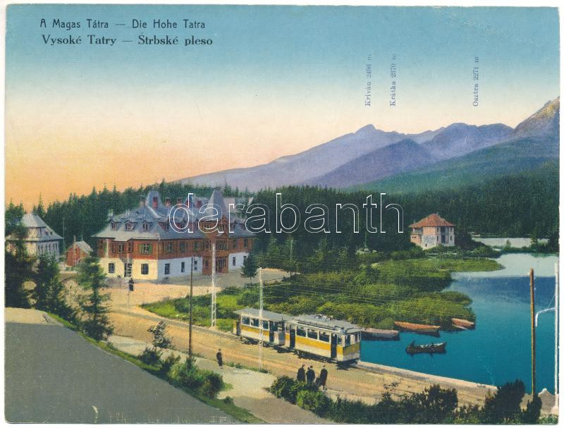 Tátra, Magas-Tátra, Vysoké Tatry; Strbské pleso / Csorba-tó és villamo...