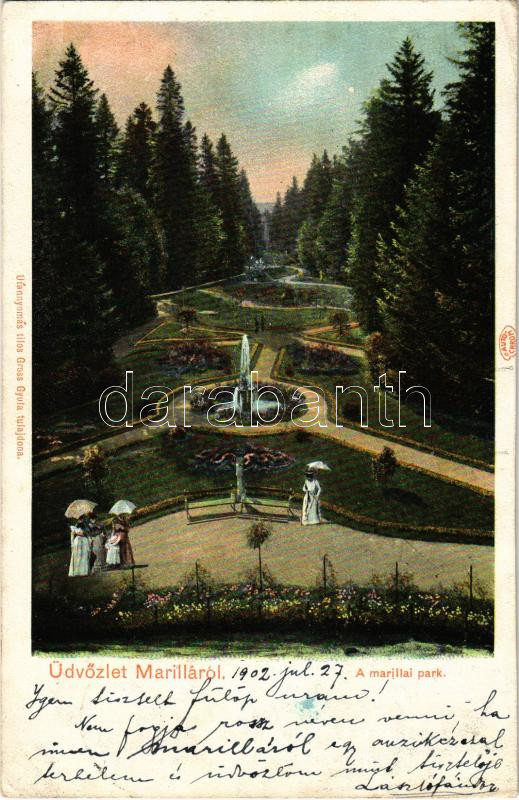 1902 Marilla, Marillavölgy, Marila; park. Gross Gyula kiadása / park, ...