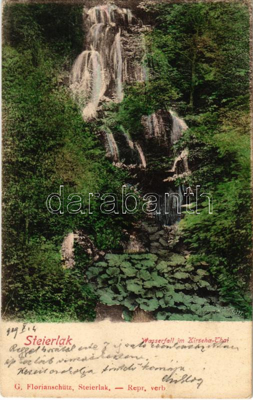 1909 Stájerlak, Steierlak, Stájerlakanina, Steierdorf, Anina; Wasserfall im Kirscha-Tal / Kirscha-völgyi vízesés. G. Florianschütz kiadása / waterfall (fa)