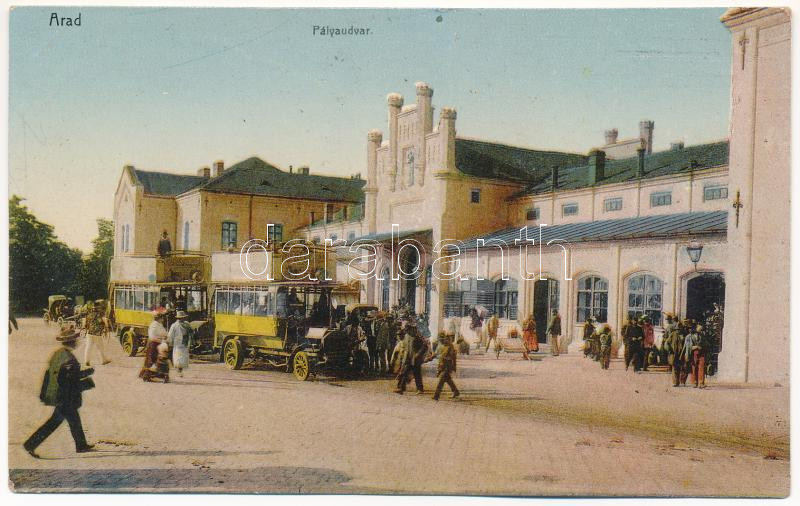 https://www.darabanth.com/en/448-Online-auction/448.0/Postcards/Transylvania~1500006/1910-Arad-Palyaudvar-vasutallomas-Aradon-gyartott-emeletes-buszok-railway-station-double-~II2964088