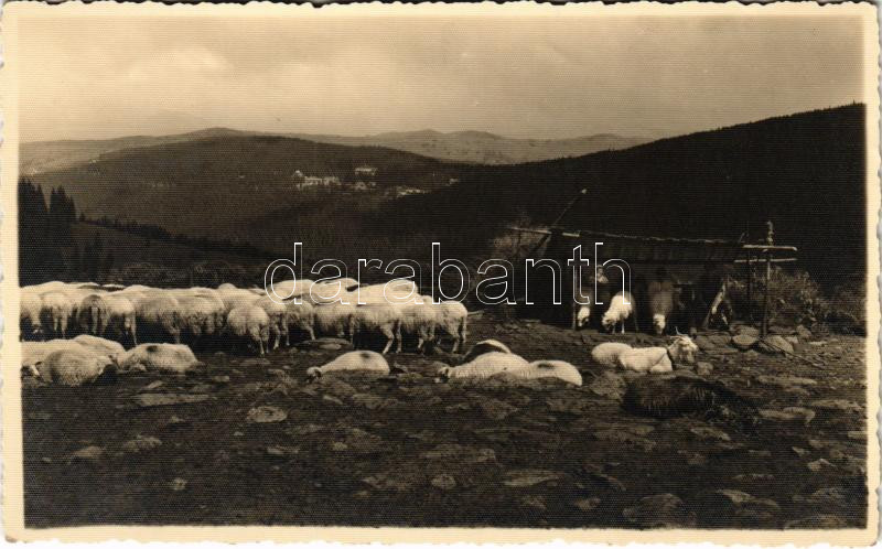 1937 Szebenjuharos, Hohe Rinne, Paltinis (Nagyszeben, Sibiu); Mulsul oilor / Melken der Schafe / Juhok fejése, juhnyáj / milking the sheep, flock of sheep (EK)