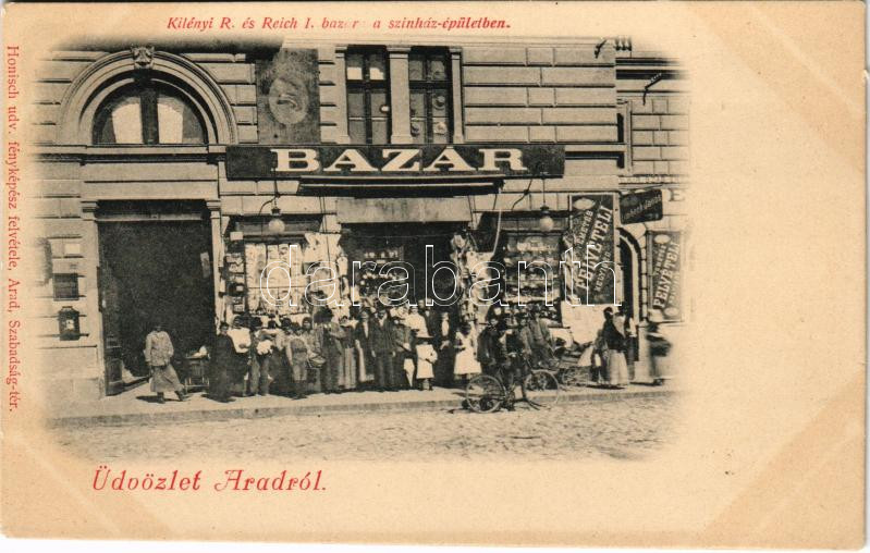 https://www.darabanth.com/en/448-Online-auction/448.0/Postcards/Transylvania~1500006/Arad-Kilenyi-R-es-Reich-I-bazara-a-szinhaz-epuletben-Honisch-udvari-fenykepesz-felvet~II2964066