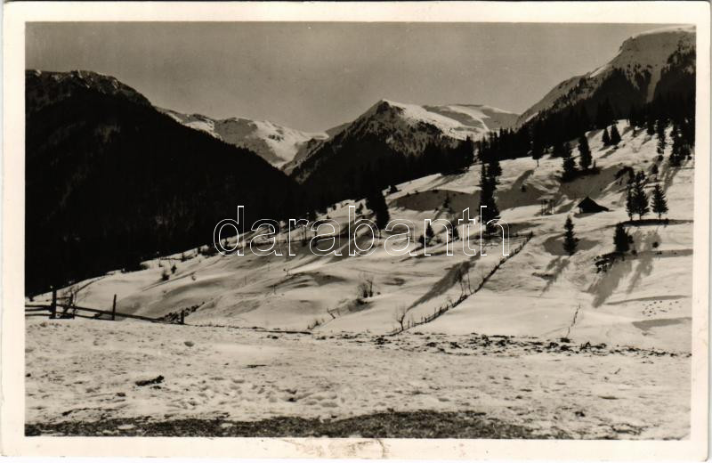 Borsafüred, Borsa; kilátás az Olimpia lesikló versenypálya utolsó szakaszára, háttérben a Galac csúcsa (Radnai havasok). Déván István felvétele / ski slope