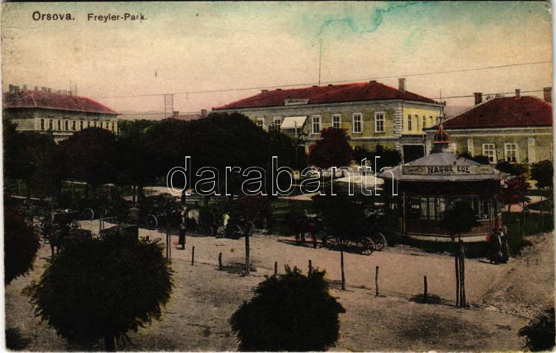 Orsova, Freyler park, Nasse Ede kioszkja, piac. Hutterer G. 23. / park...