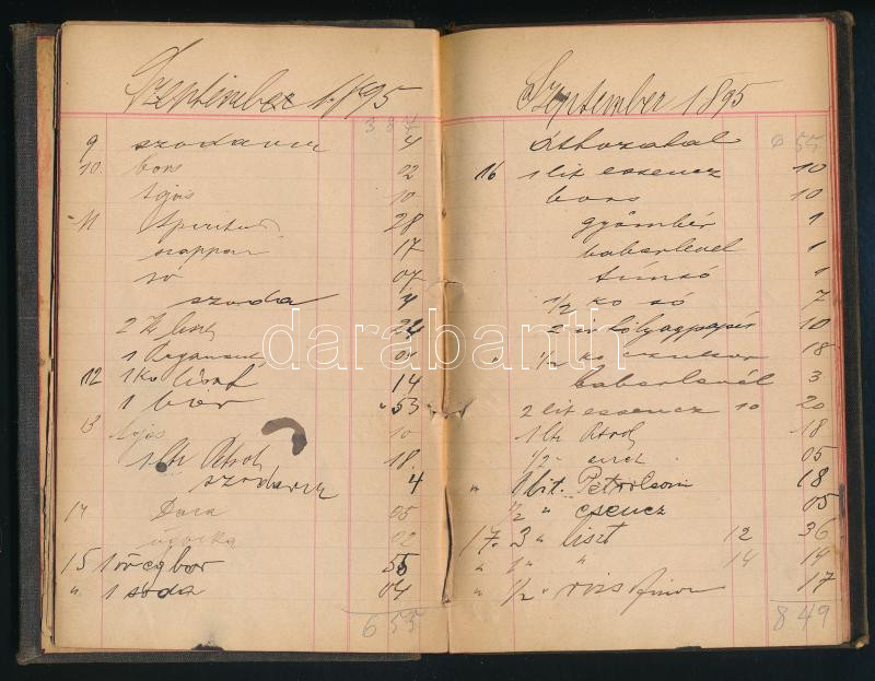 1895 Bp., Erzsébet körút, "Petőfihez" Hirschfeld Mór / Kalmár László kereskedésének bevásárlókönyve