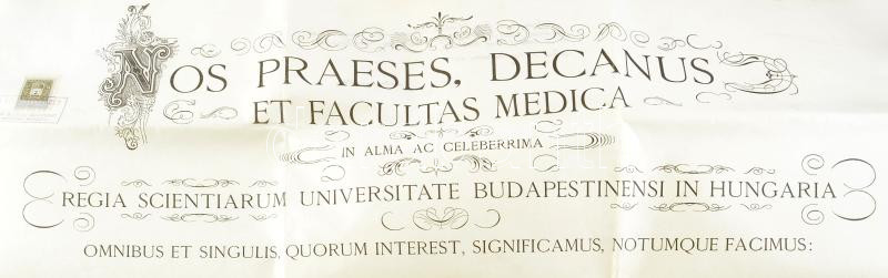 Description: 1919 Johan Hugó (1890 - 1951) festőművész, (aki eredetileg gyógyszerészként végzett) gyógyszerész diplomája. Pergamen, függő viaszpecséttel. 67x50 cm Jó állapotban