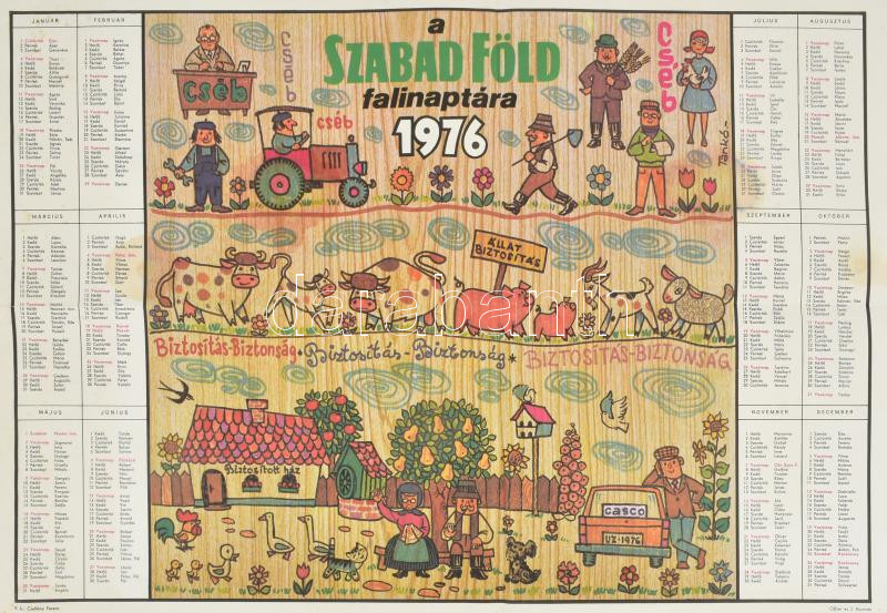 1976 A Szabad Föld falinaptára, reklámokkal, hajtva, foltokkal, 58,5x4...