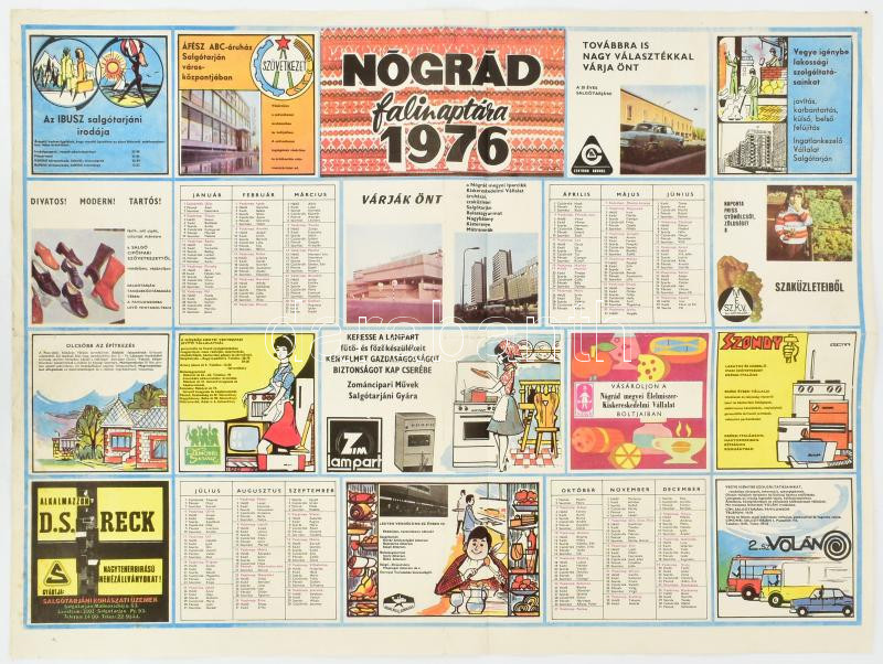 1976 Nógrád falinaptára, reklámokkal, hajtva, minimális sérülésekkel, ...