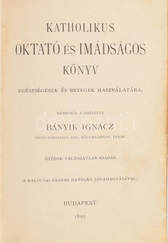 Katolikus Oktató és imádságos könyv, ford.: Bányik Ignácz. Budapest, 1... https://www.darabanth.com/en/449-Online-auction/449.0/Books/Books-Religion~2000023/Katolikus-Oktato-es-imadsagos-konyv-ford-Banyik-Ignacz-Budapest-1895-Franklin-tarsulat~II2982622