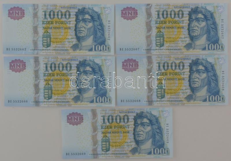 2015. 1000Ft (5x) sorszámkövetők és közeli sorszámok "DE 5532662 - DE 5532669" T:UNC,AU