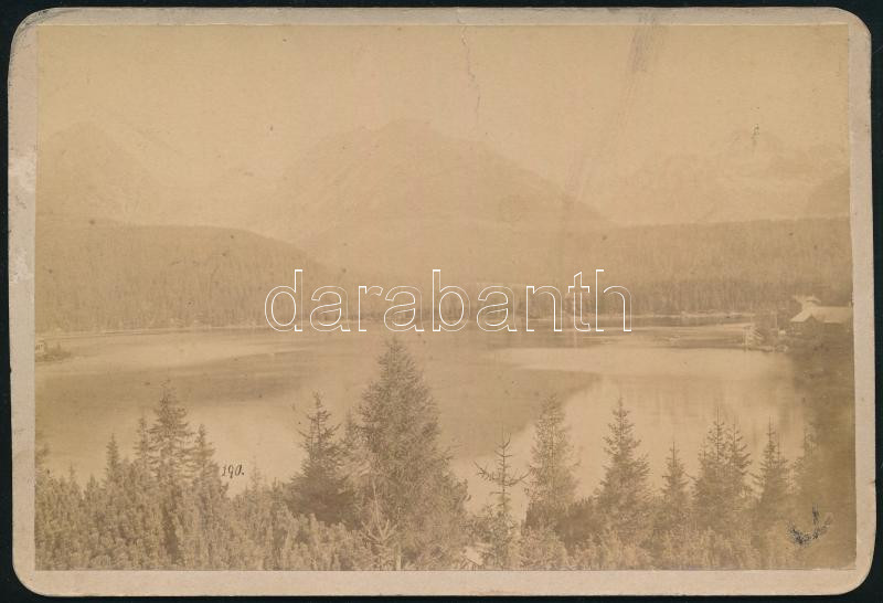 1891 Csorba-tó, Tátra, Szlovákia, keményhátú fotó Divald Károly és Fia eperjesi műterméből, felületén törésnyom, 11×16,5 cm