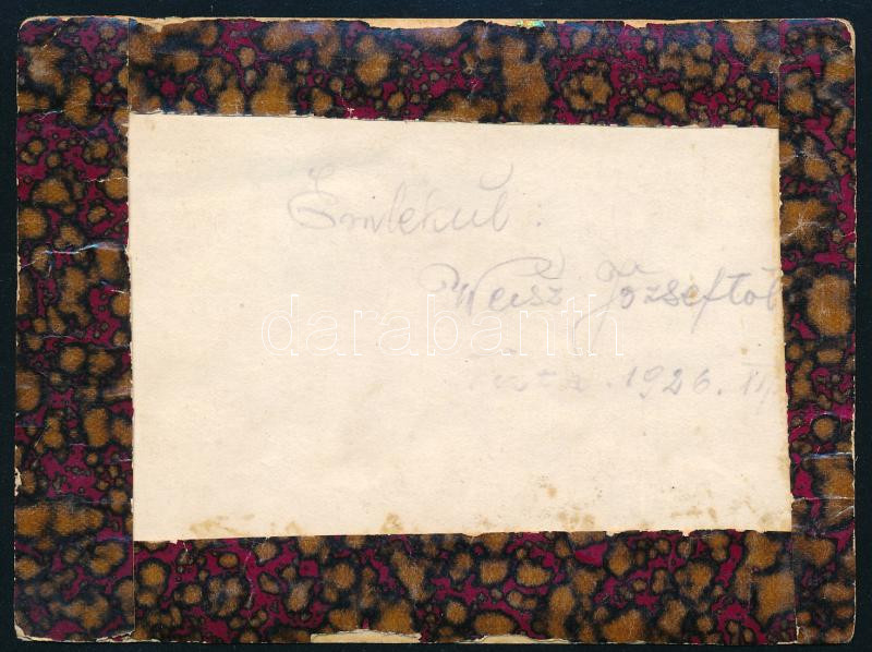 1926 Weisz József (az 1910-es években az MTK labdarúgója?) dedikált fotója, hátul a szélei ragasztással megerősítve, 12x9 cm