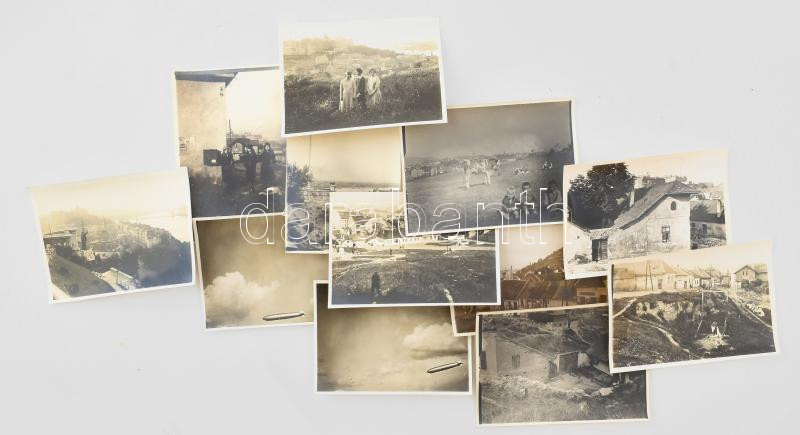 1930-1931 Budapest, Tabán, Zeppelin a város felett, 12 db fotó, 6×8 cm