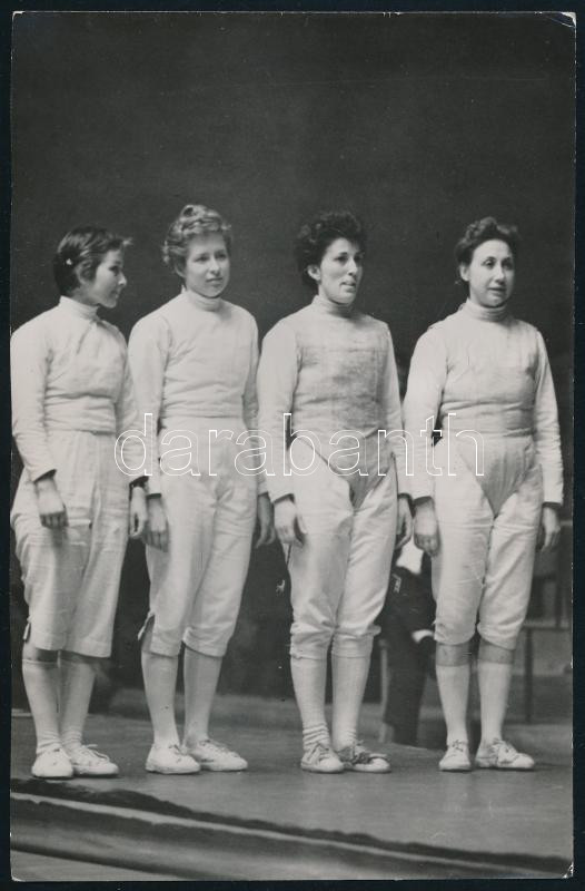 Szalontay Kati, Rejtő Ildi, Juhász Kati, Kovácsné Nyári Magdi olimpiai vívócsapat18×12 cm, feliratozott sajtófotó, 18×12 cm