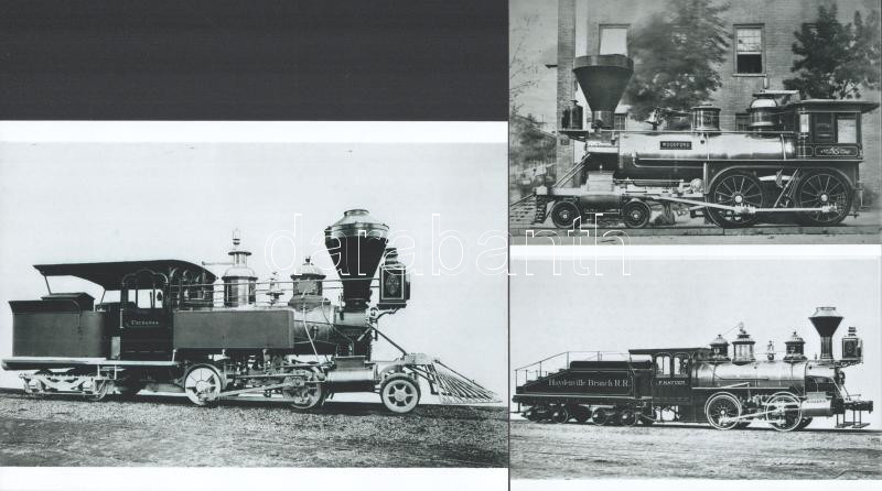 Description: cca 1870 Lokomotívok tétele, Fekete György (1904-1990) budapesti fényképész hagyatékából (vasúttörténeti gyűjteményéből) 7 db modern nagyítás, 15x21 cm és 10x15 cm