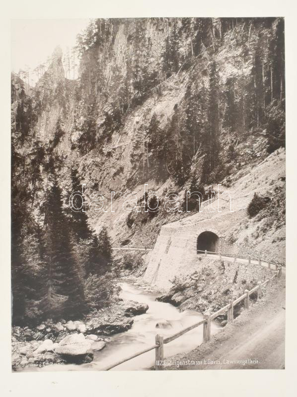 cca 1900 Svájc, hegyi út alagúttal Davos közelében, nagyméretű, karton...