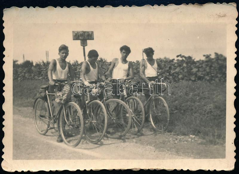 cca 1940 Kerékpáros fiúk Veszprém határában, fotó, 6×9 cm