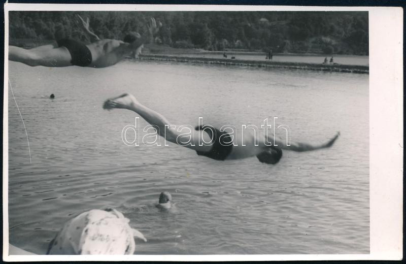 cca 1950 Vízbe ugró férfiak, fotólap, 9×13 cm