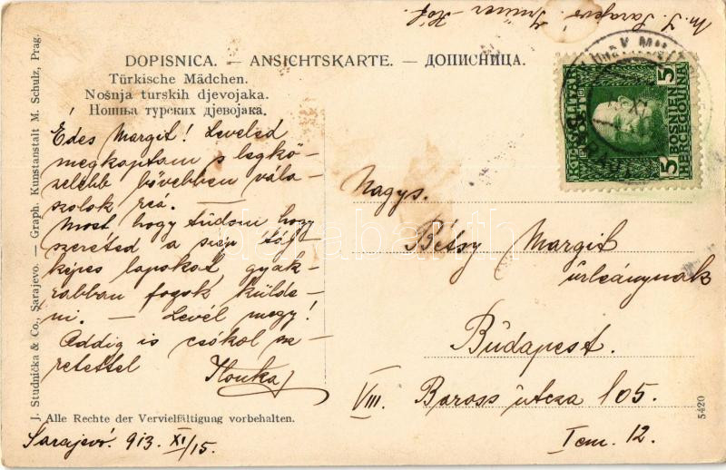 1913 Sarajevo, Türkische Mädchen / Turkish girls, folklor + "K.U.K. MI...