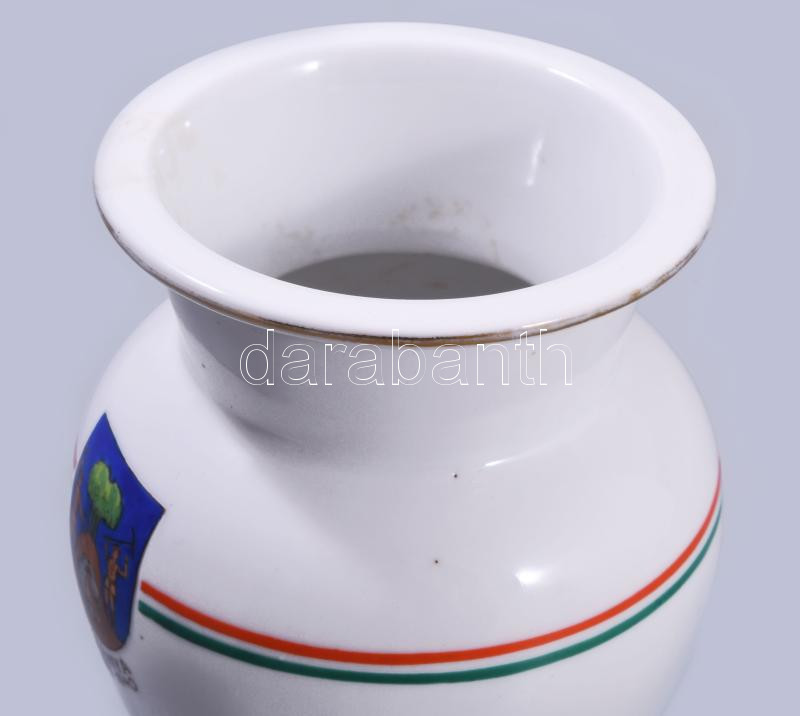 1940 "Nagybánya visszatért" feliratú porcelán váza, részben kézzel fes...