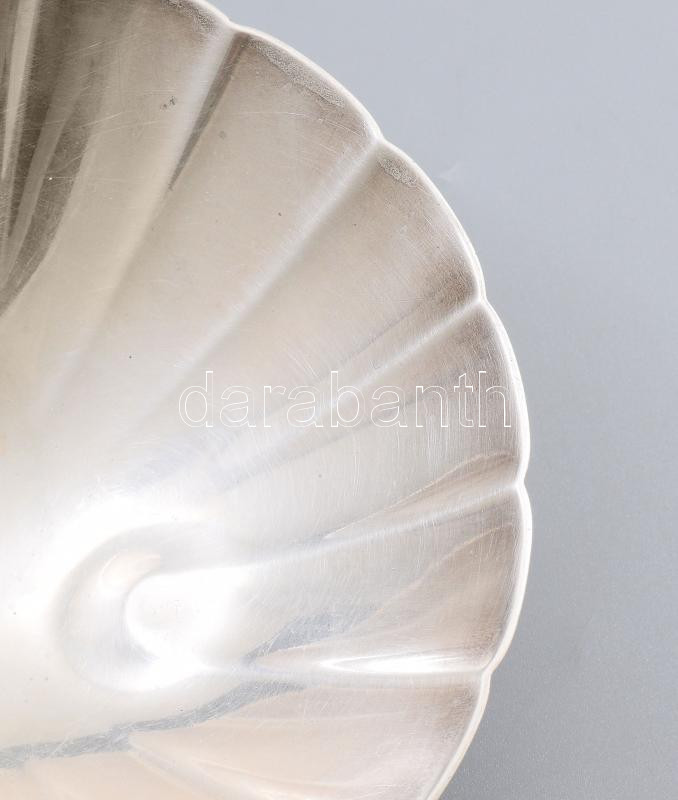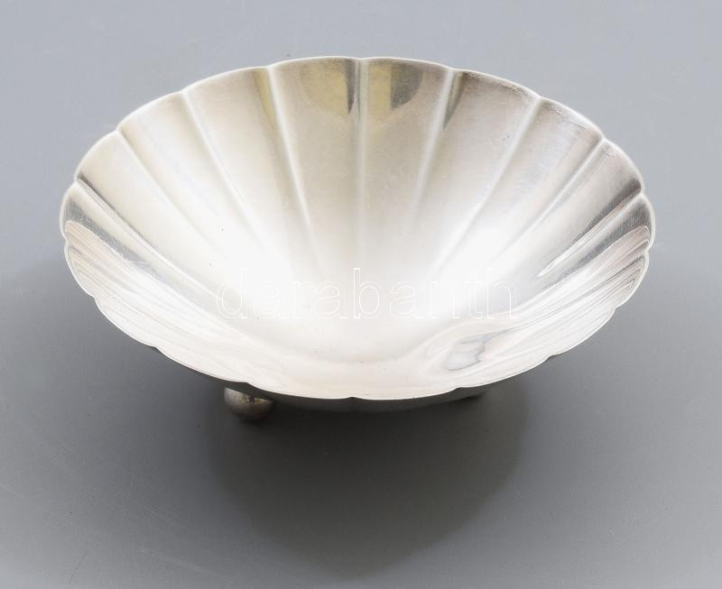 Description: 1940 Tiffany & Co. art deco ezüst (Ag) legyezőalakos mogyorós tál. Sterling ezüst, formaszám: 22673, lábánál kis benyomódással, d:15 cm, m: 5 cm, nettó 223g