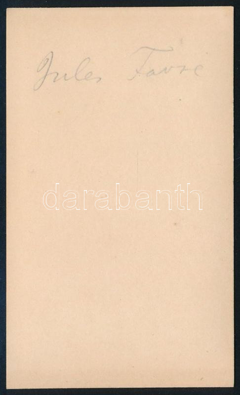cca 1880 Jules Favre (1809-1880) francia államférfi, ügyvéd, a Nemzetgyűlés tagja, vizitkártya, 10,5x6 cm // cca 1880 Jules Favre (1809-1880) French statesman, lawyer, member of the National Assembly, cdv photo, 10.5x6 cm