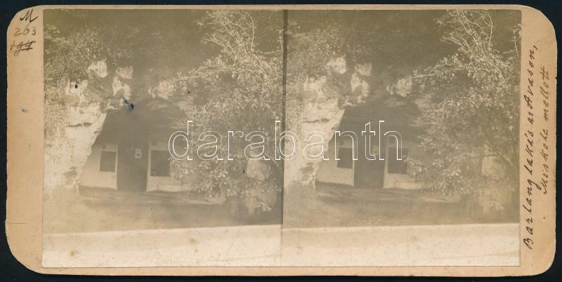 cca 1910 Miskolc, avasi barlanglakás, sztereófotó, feliratozva, 9×17,5...