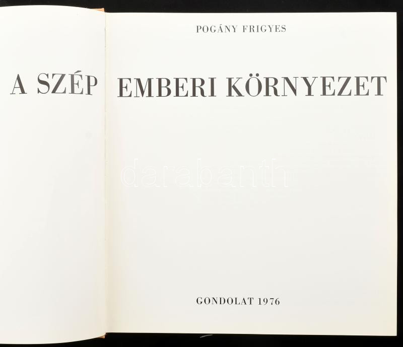 Pogány Frigyes: A szép emberi környezet. A szerző, Pogány Frigyes (1908-1976) építész, művészettörténész, urbanista, esztéta, műemlék-topográfus, főiskolai és egyetemi tanár, az Iparművészeti Főiskola igazgatója által Koós Judit (1923-2006) művészettörténész, műkritikus részére DEDIKÁLT példány. Bp., 1976., Gondolat, 475+2 p. Gazdag feketefe-fehér képanyaggal illusztrált. Kiadói egészvászon-kötés, kiadói papír védőborítóban, jó állapotban.