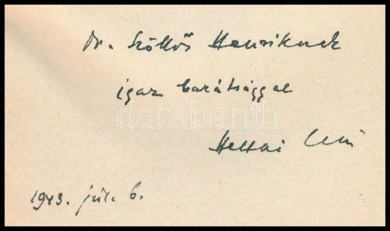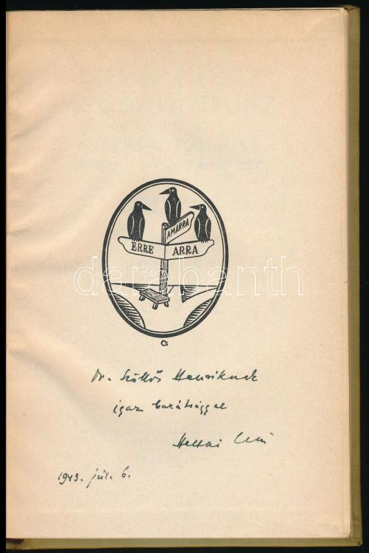 Description: Heltai Jenő: Lumpáciusz Vagabundusz vagy a három jómadár. dr. Szőllős Henrik (1886-1945) urológus, orvosnak dedikált példány! Nestroy bohózatos mesejátéka (1833). Három felvonás (előjáték és kilenc kép). A mai színpadra átírta és versbe szedte - -. Bp., 1943, Szerzői, Athenaeum, 163 p. Első kiadás. Kiadói papírkötésben