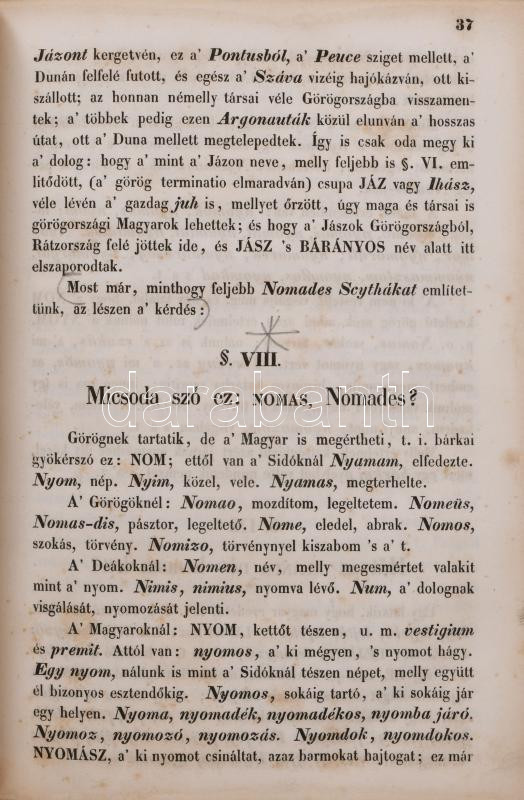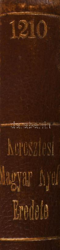 Keresztesi József: Magyar nyelv eredete. Néhai - - kéziratából. Kiadta Fel-Apáthi Molnár Sándor. Belső címe: A bárkai nyelvtől ágazott magyar nyelv, mellynek eredetét, reguláit, ágazatit és ezek szerént némelly nemzeteknek, főembereknek, familiáknak, helységeknek, hegyeknek, pogány isteneknek, vizeknek, mértékeknek 's 'a t. magyar eredetű és értelmű neveiket visgálja és mutogatja - - szalatsi prédikátor. Pozsonyban, 1844, Wigand Károly Fridrik, XVI+126 p. Hozzákötve: Környei János: A magyar nemzeti irodalomtörténet vázlata. Középtanodák s képezdék számára, valamint magánhasználatra. Írta - -, királyi tanácsos és tanfelügyelő. Bp., 1874, Lampel Róbert, 211+1 p. 3., javított és bővített kiadás. Átkötött aranyozott gerincű félbőr-kötésben, Hirháger-kötés, kopott borítóval, foltos lapokkal, magánkönyvtári bélyegzésekkel.