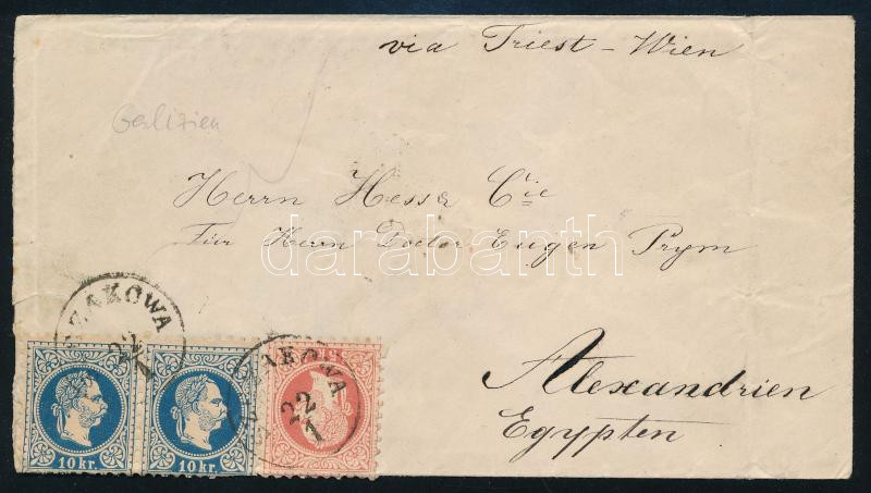 https://www.darabanth.com/en/45-Major-auction/45.1/Foreign-philately-and-postal-history/Austria~18898/1869-5kr-plus-2-x-10kr-levelen-Galiciabol-Egyiptomba-cover-from-Galicia-to-Egypt~II3426305